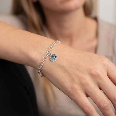 * Select the charm on its own, or enjoy it perfectly placed on a delicate 19-gauge link chain bracelet.