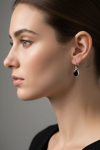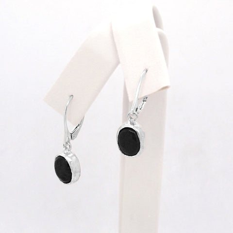 * These black onyx cabochon dangle earrings are set on a bezel with a safe lever back.